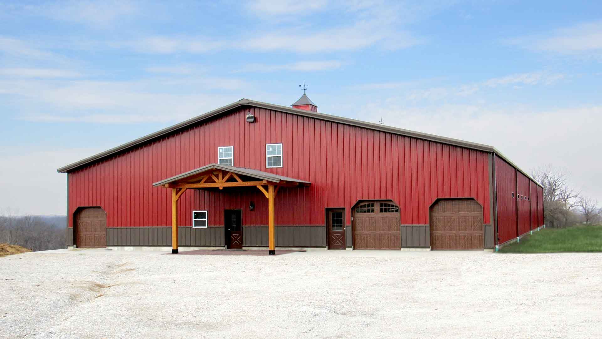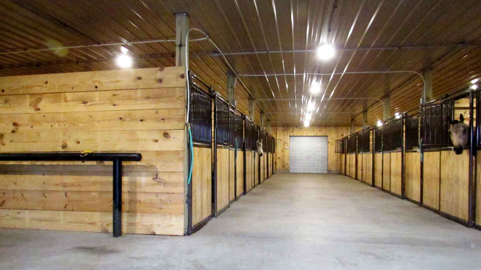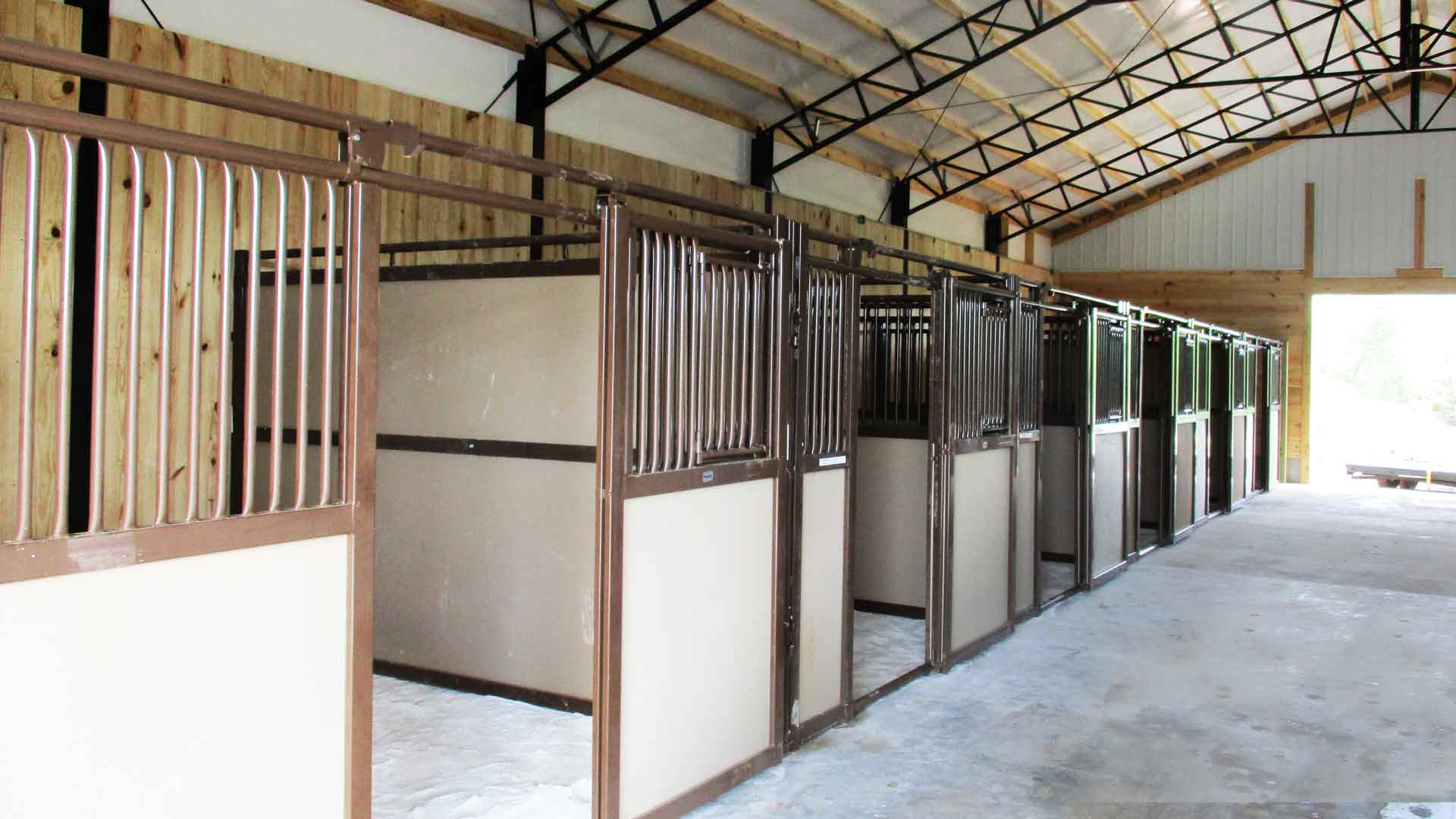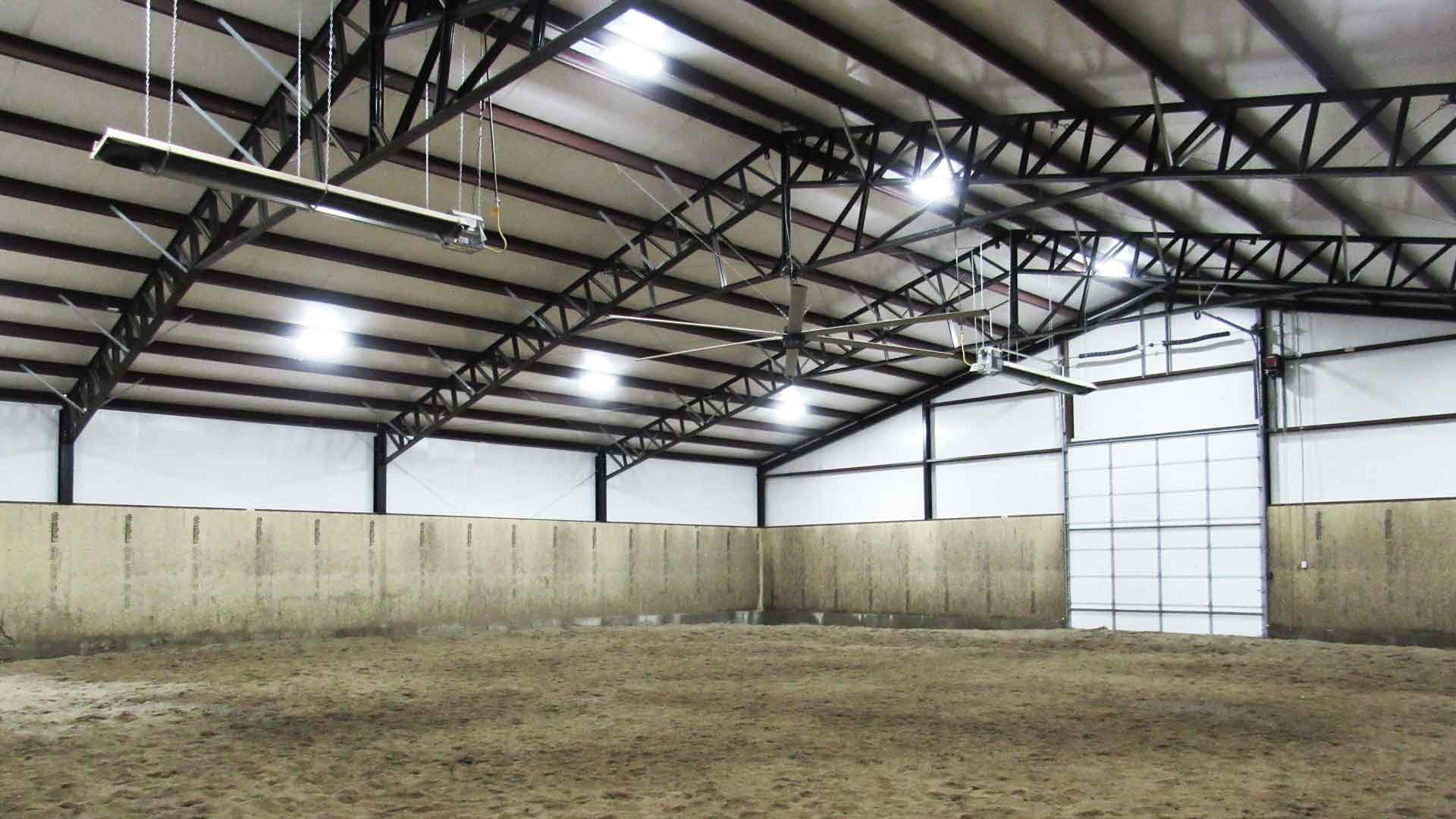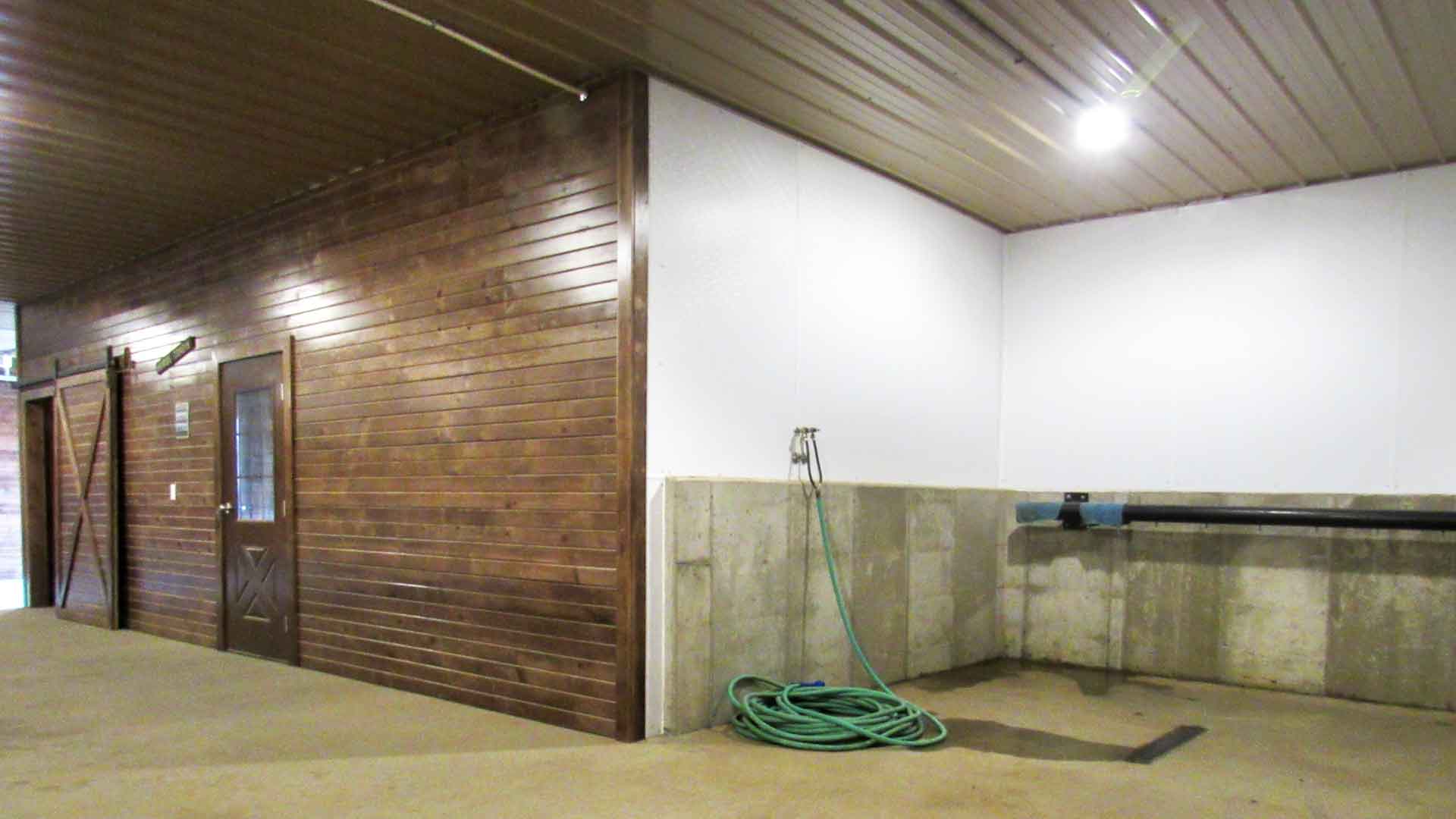 80’x168′ horse barn with stalls, tack room, wash bay, and indoor arena built in Sedalia, Missouri.